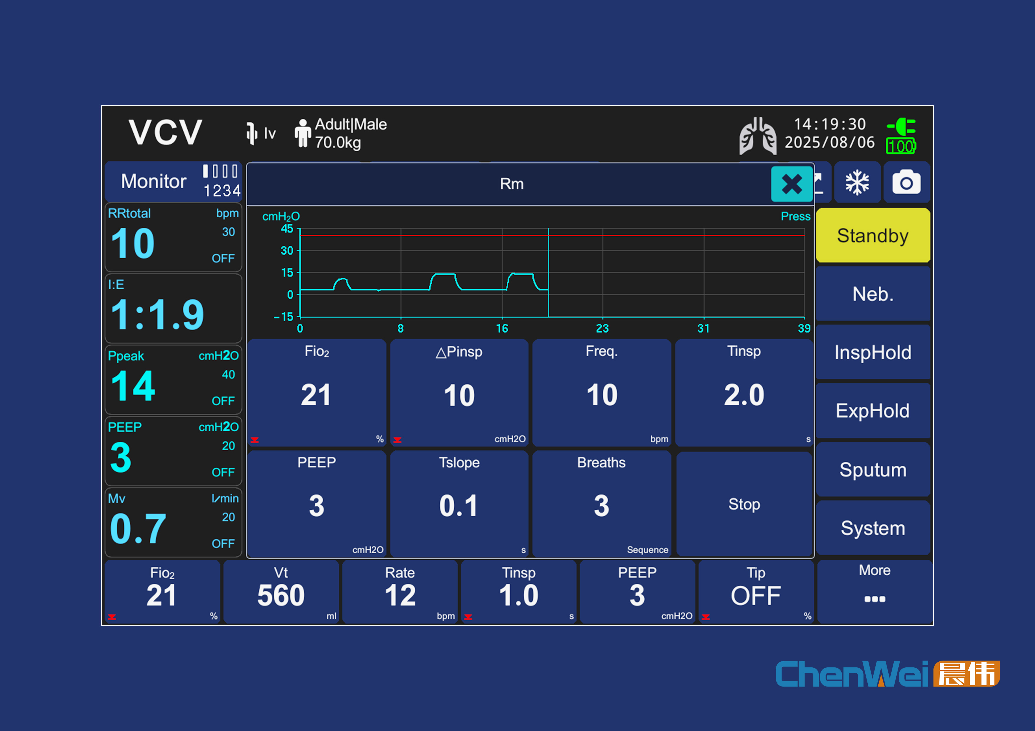 Chenwei Medical highlights safe and precise Recruitment Maneuver (RM) application, adjusting PEEP, ΔPinsp, inspiratory time, and breath sequences to improve oxygenation in ARDS or low-compliance patients, while protecting lung tissue. This demonstrates ventilator support for lung-protective ventilation in clinical practice.