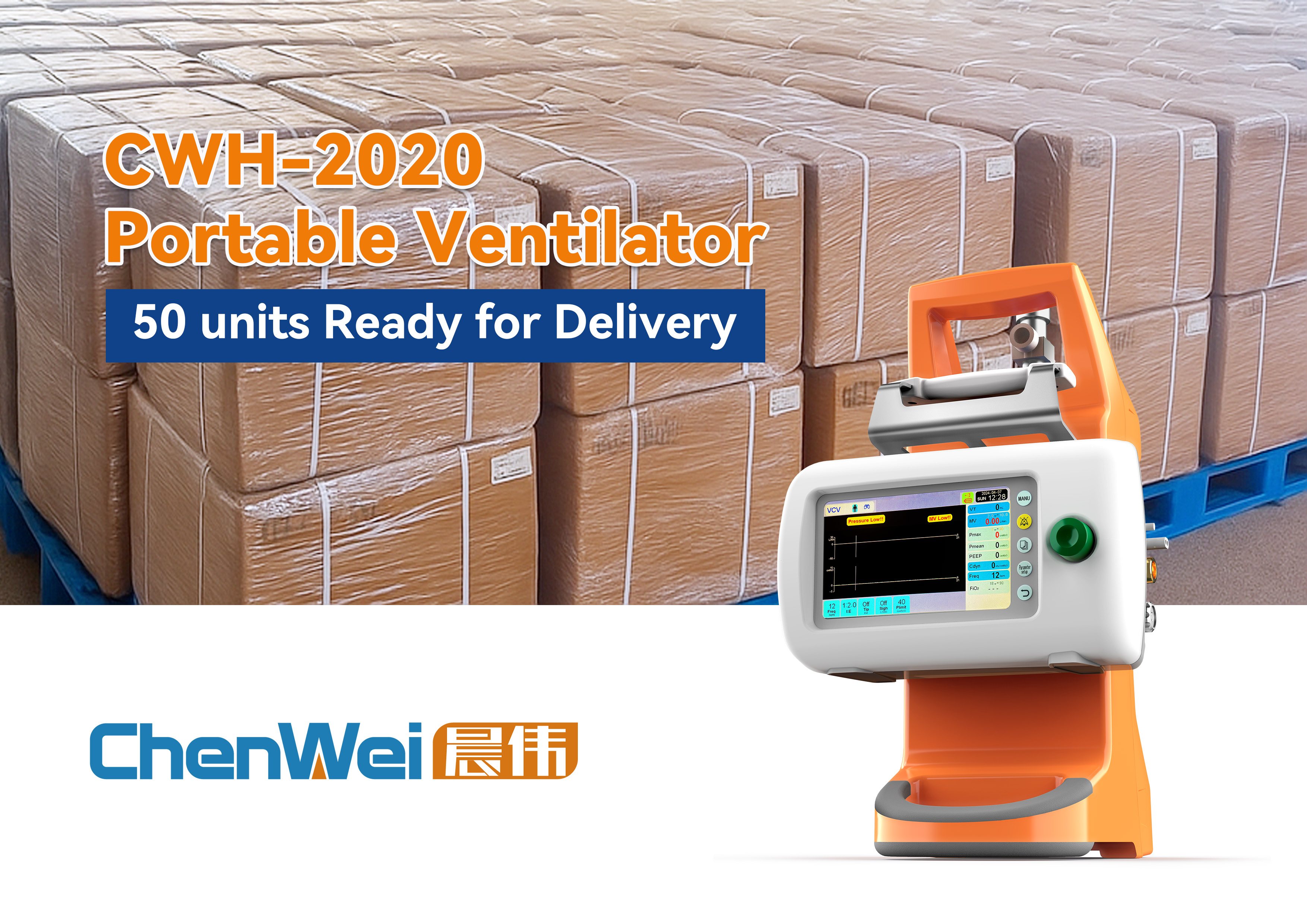 A batch of 50 CWH-2020 Emergency Ventilators has completed final inspection and is ready for shipment, demonstrating Chenwei Medical’s commitment to providing reliable respiratory support for emergency and transport care.