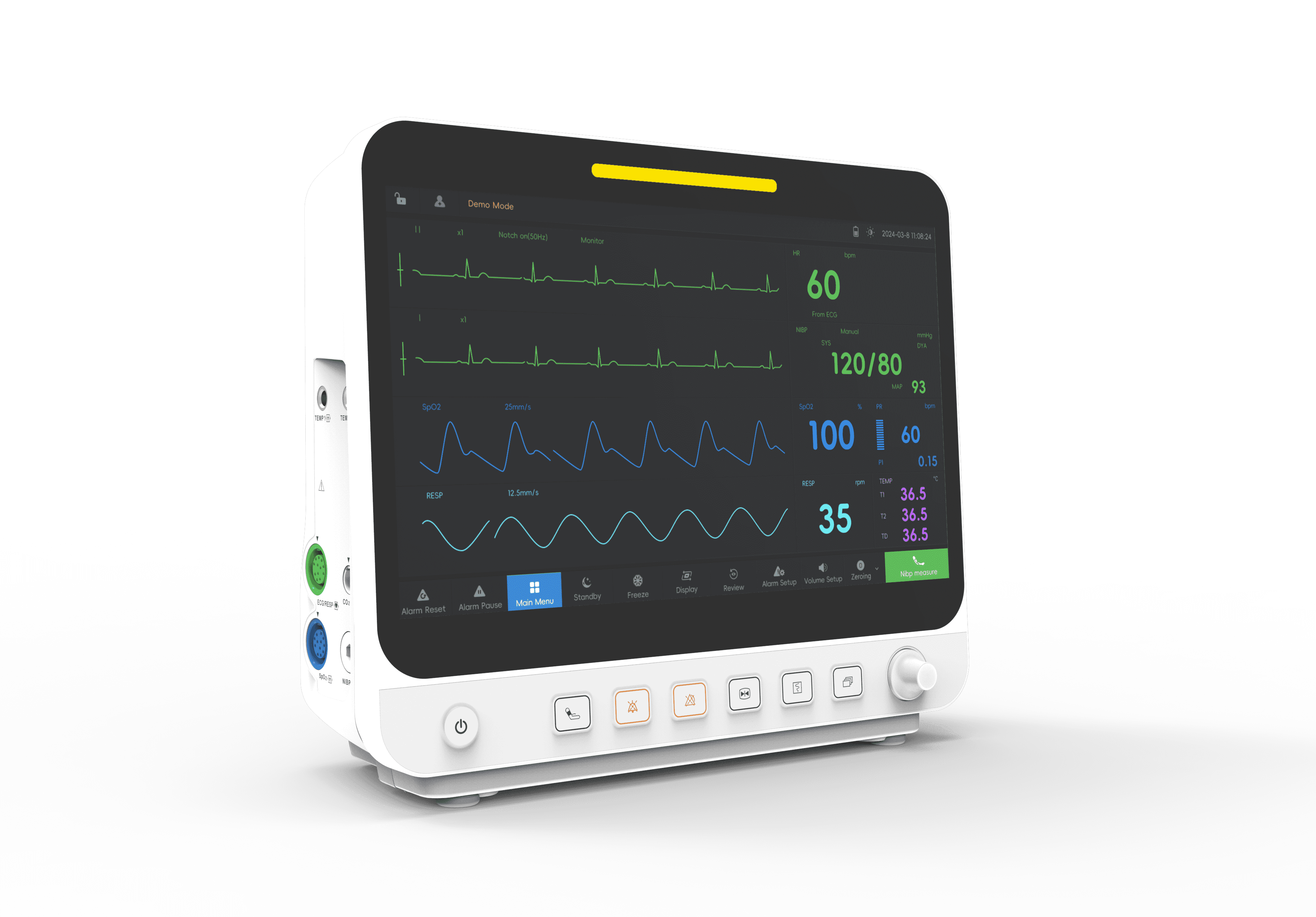 Essential Vital Signs MonitoringStandard parameters: ECG (3/5-lead), SpO₂, NIBP, RESP, TEMP, PR. Optional: CO₂, IBP.